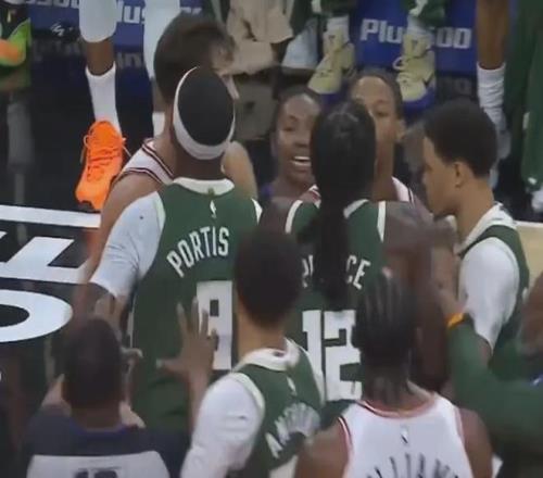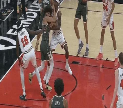 到了第三节比赛快结束的时候,雄鹿和公牛的球员终于炸了,爆发多人冲突。
