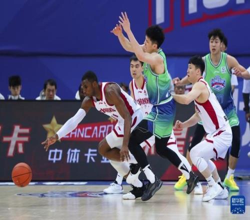 12月21日,山西汾酒队球员焦海龙(右二)在比赛中进攻。新华社记者 孙凡越 摄