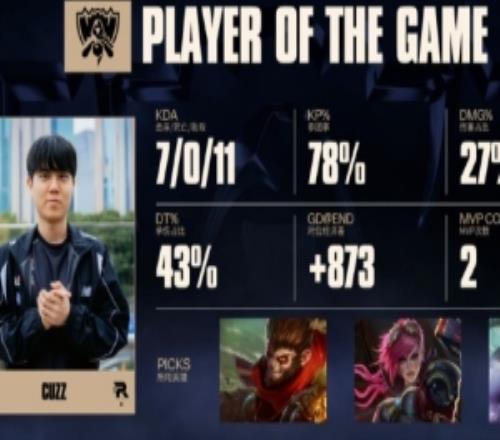 体育资讯11月09日称 S15总决赛KT 2-1 T1,率先拿下决赛赛点!KT打野Cuzz选出蒙多...